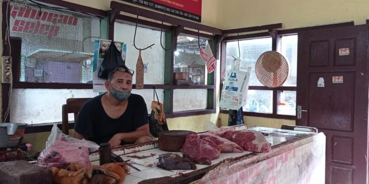 Terbukti harga daging sapi di Pasar Tradisional Arjowinangun Pacitan hingga detik ini masih stabil. Seperti yang salah satu penjual daging sapi Bambang (57).