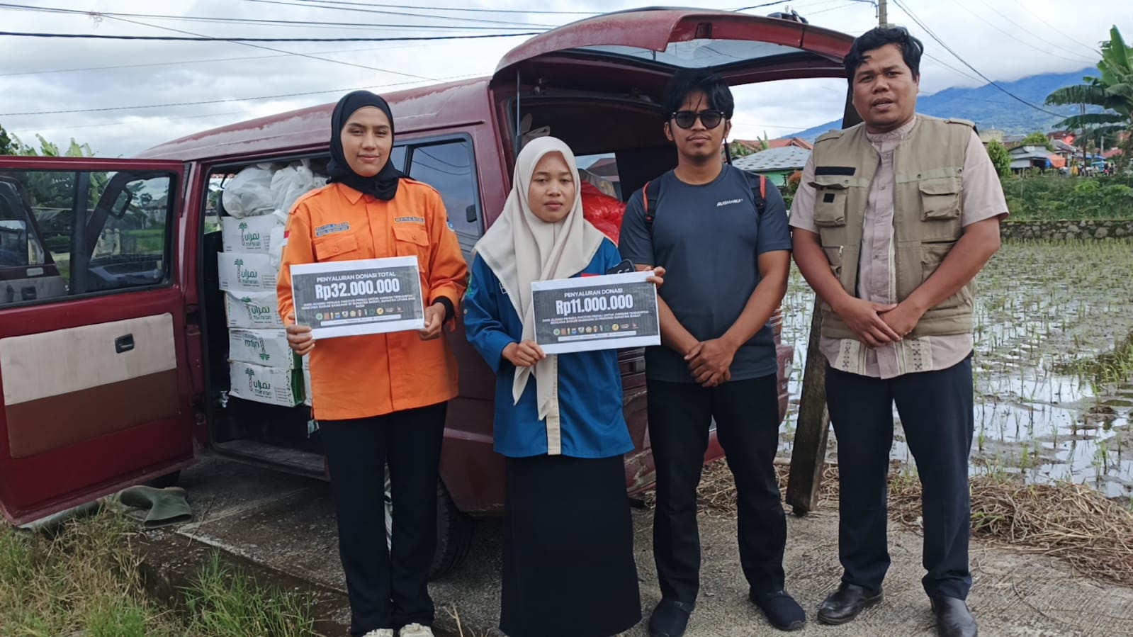 Bantuan itu disalurkan melalui relawan di masing-masing daerah dengan rincian: Rp11 juta untuk Sumatra Barat, Rp10 juta untuk Sumatra Utara, dan Rp11 juta untuk Aceh.